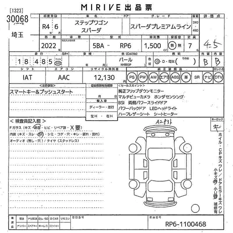 Статус продан Лот 30068 Аукцион MIRIVE Saitama Дата аукциона 25.03.2026