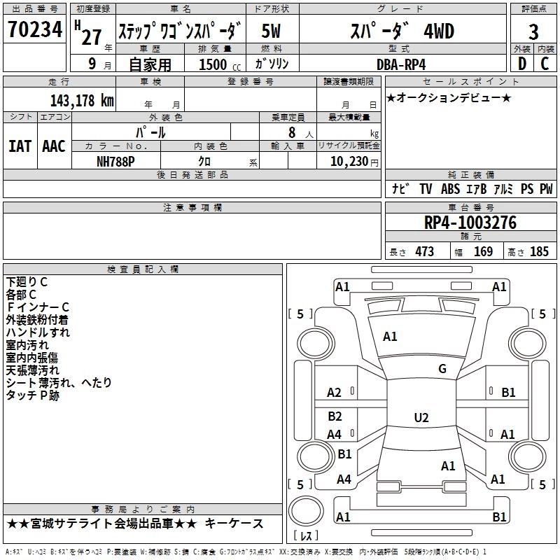 Итоговая цена авто на аукционе 1 182 000 ¥