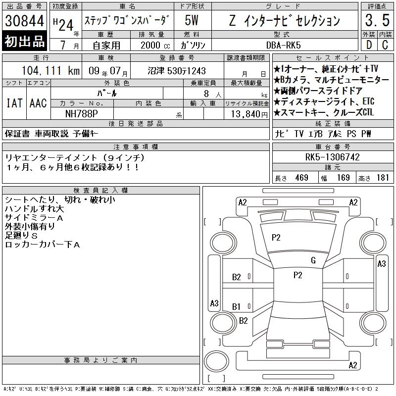 Год выпуска2012 Пробег 104 000 км КузовRK5 КомплектацияZ INTER NAVIGATION SELECTION