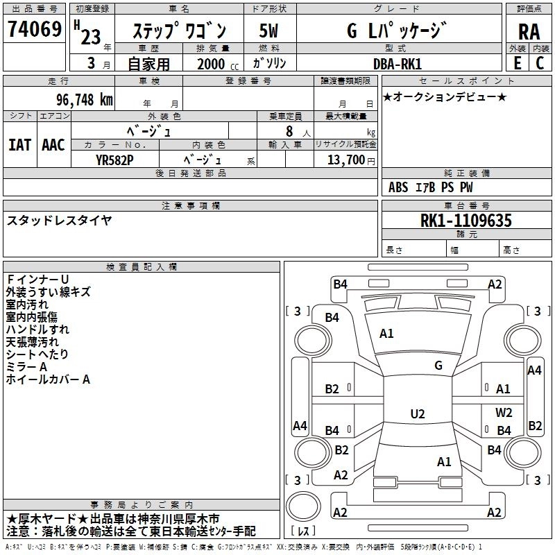 Год выпуска2011 Пробег 97 000 км КузовRK1 КомплектацияG L PACKAGE