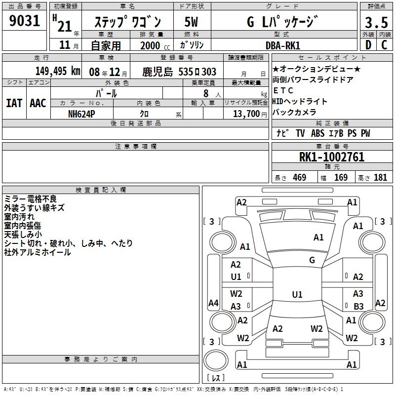 Год выпуска2009 Пробег 149 000 км КузовRK1 КомплектацияG L PACKAGE