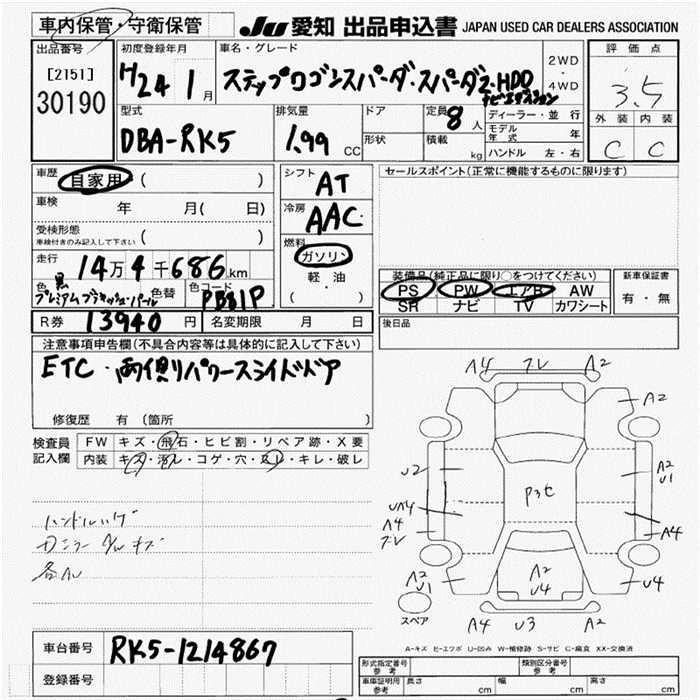 HONDA STEPWGN 2012 г., лот № 30190