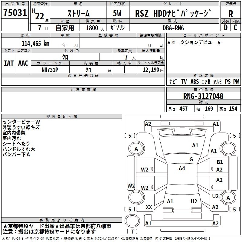 HONDA STREAM 2010 г., лот № 75031