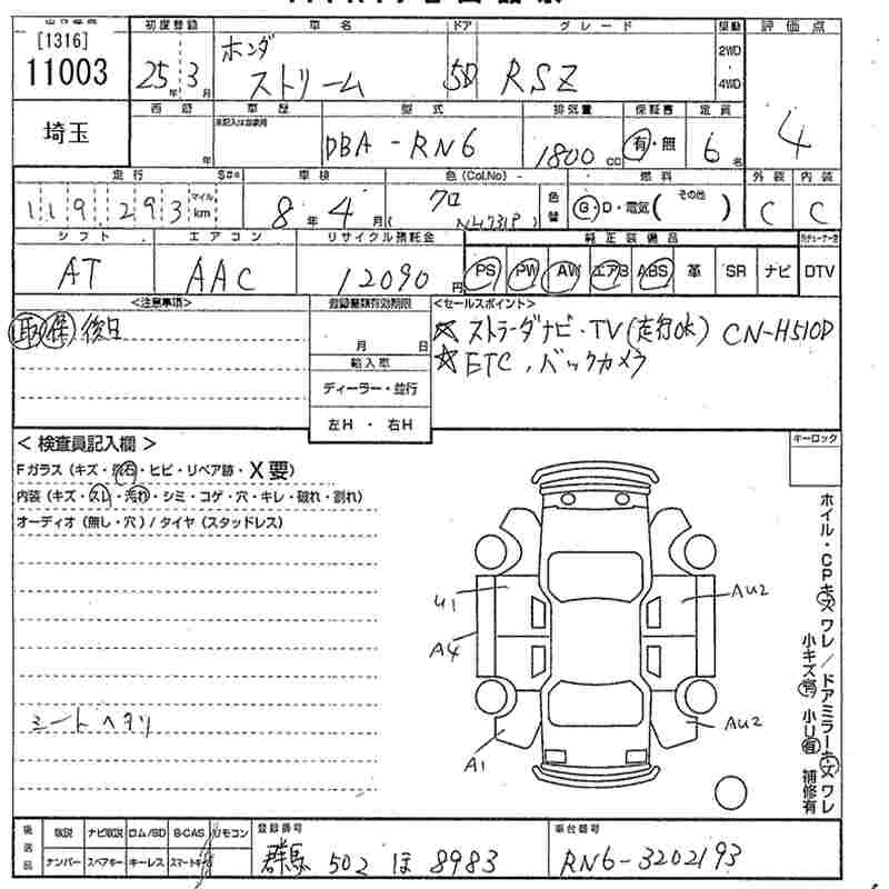 | RSZ | DBA-RN6 | R18A | FF | 5AT | 1799cc | 140ps(103kW)/6300rpm | AИ-92 | 1 990 000 |