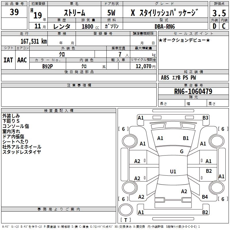 | X | DBA-RN6 | R18A | FF | 5AT | 1799cc | 140ps(103kW)/6300rpm | AИ-92 | 1 806 000 |