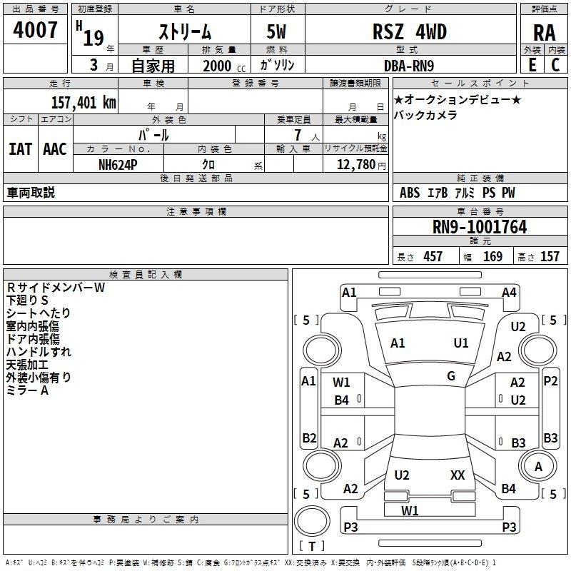 | X | DBA-RN6 | R18A | FF | 5AT | 1799cc | 140ps(103kW)/6300rpm | AИ-92 | 1 806 000 |