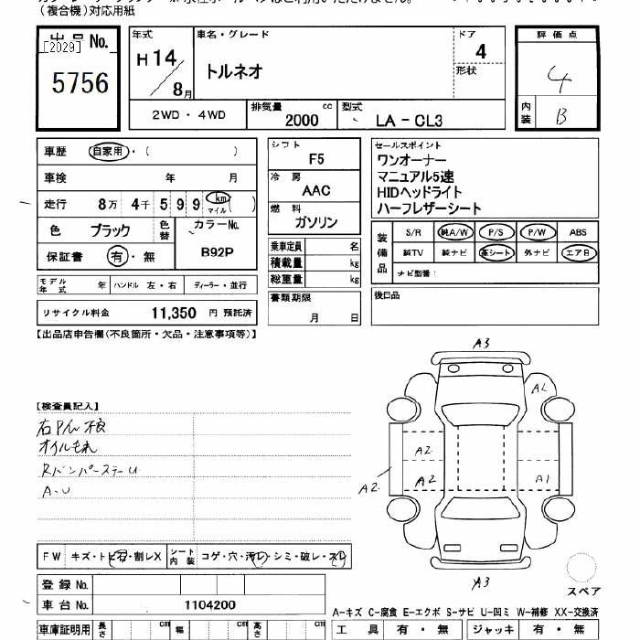 | PREMIUM EDITION | LA-CL3 | F20B | FF | 5MT | 1997cc | 150ps(110kW)/6000rpm | AИ-92 | 1 953 000 | |