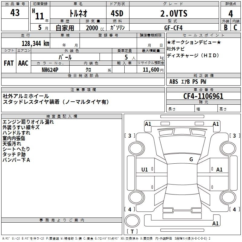 | 1.8VTS | GF-CF3 | F18B | FF | 4AT | 1849cc | 140ps(103kW)/6100rpm | AИ-92 | 1 798 000 | |