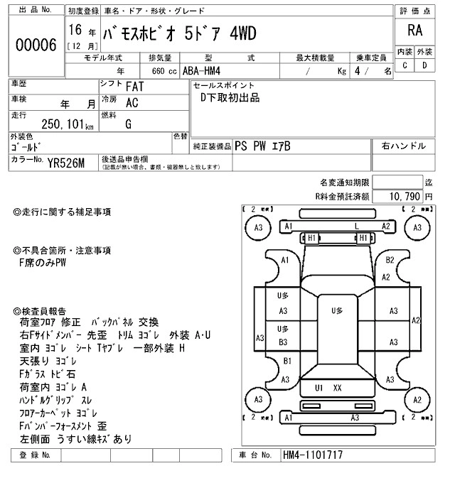 | L | ABA-HM4 | E07Z | Full-time 4WD | 5MT | 656cc | 46ps(34kW)/5500rpm | AИ-92 | 1 411 200 | |