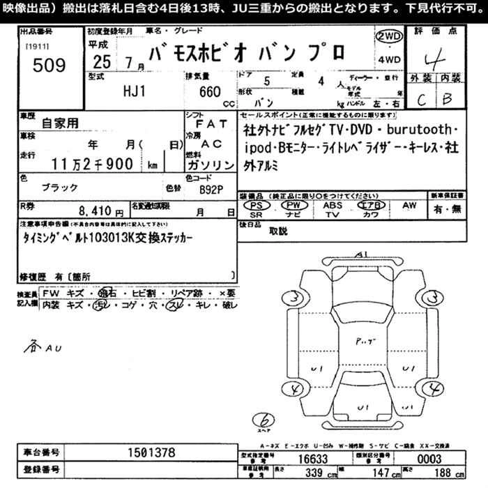 HONDA VAMOS HOBIO 2013 г., лот № 509