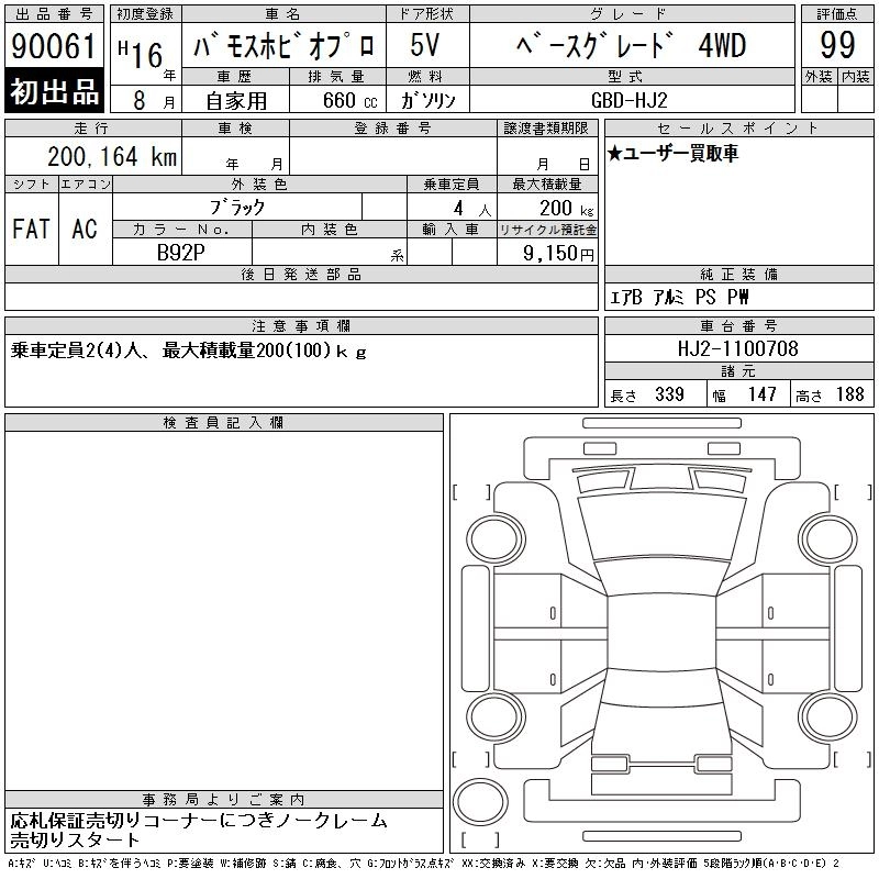 | TURBO | ABA-HM3 | E07Z | Mid-ship | 4AT | 656cc | 64ps(47kW)/6000rpm | AИ-92 | 1 428 000 | |