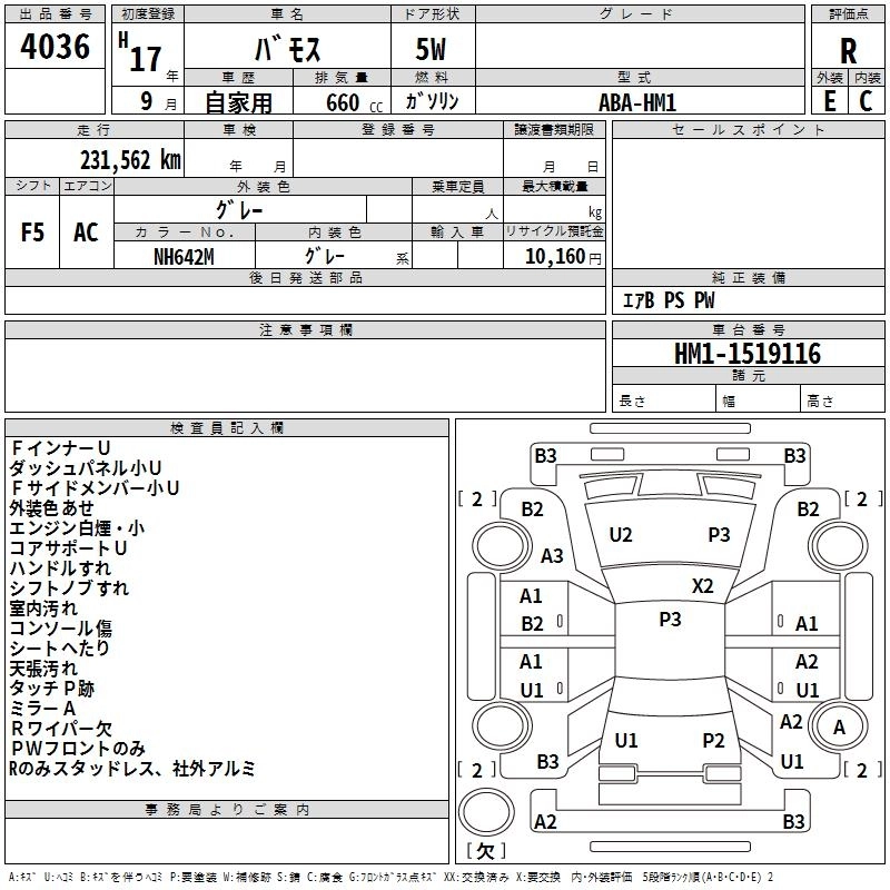 | L | ABA-HM1 | E07Z | Mid-ship | 5MT | 656cc | 46ps(34kW)/5500rpm | AИ-92 | 1 264 200 | |