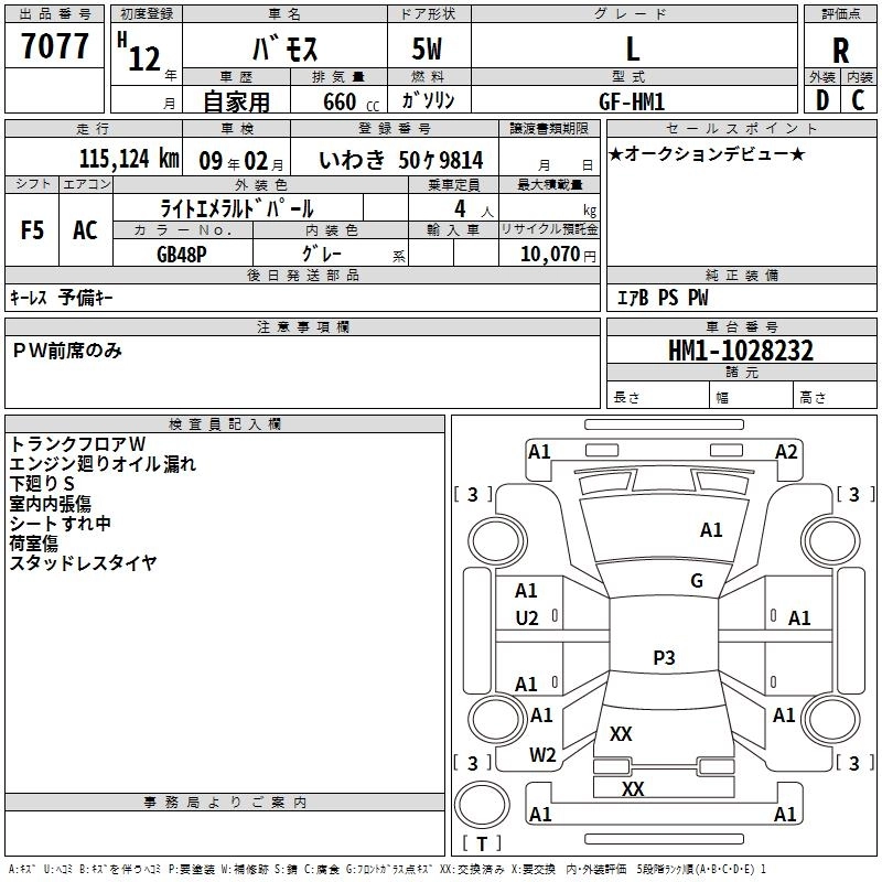 | M | GF-HM1 | E07Z | Mid-ship | 5MT | 656cc | 46ps(34kW)/5500rpm | AИ-92 | 1 094 000 |