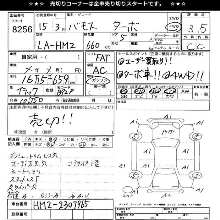 | TURBO | LA-HM2 | E07Z | Full-time 4WD | 4AT | 656cc | 64ps(47kW)/6000rpm | AИ-92 | 1 528 000 | |