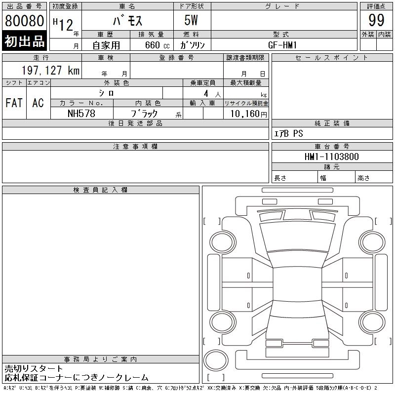 | M | GF-HM1 | E07Z | Mid-ship | 5MT | 656cc | 46ps(34kW)/5500rpm | AИ-92 | 1 094 000 |