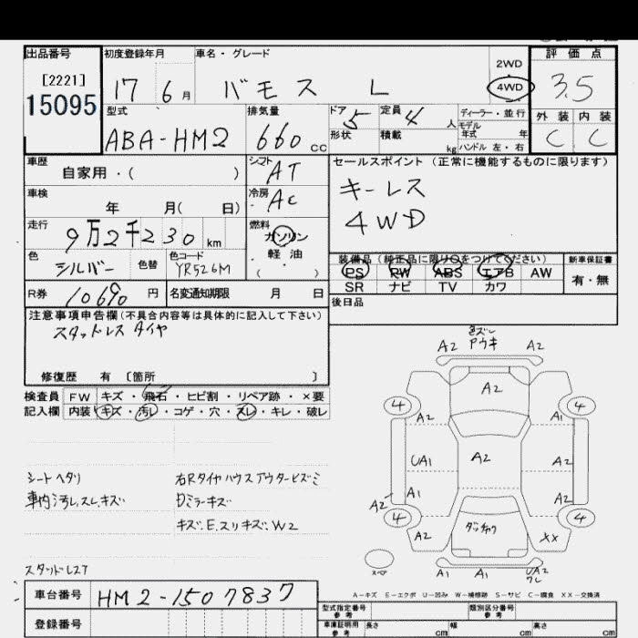 | L | ABA-HM2 | E07Z | Full-time 4WD | 5MT | 656cc | 46ps(34kW)/5500rpm | AИ-92 | 1 390 200 | |
