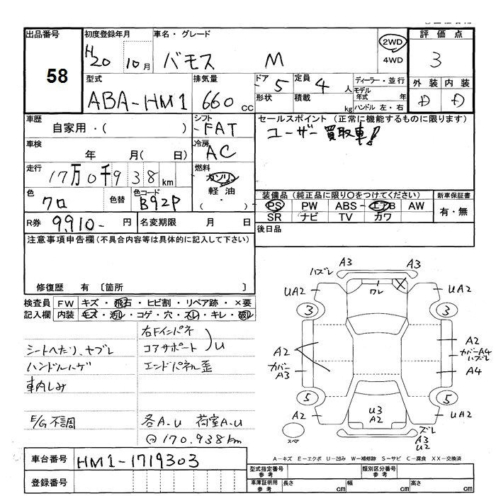 | L TURBO LOW DOWN | ABA-HM1 | E07Z | Mid-ship | 4AT | 656cc | 64ps(47kW)/6000rpm | AИ-92 | 1 522 500 | |