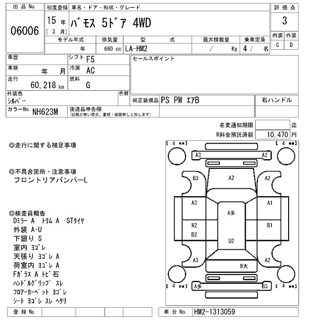 | L | LA-HM2 | E07Z | Full-time 4WD | 5MT | 656cc | 46ps(34kW)/5500rpm | AИ-92 | 1 324 000 | |