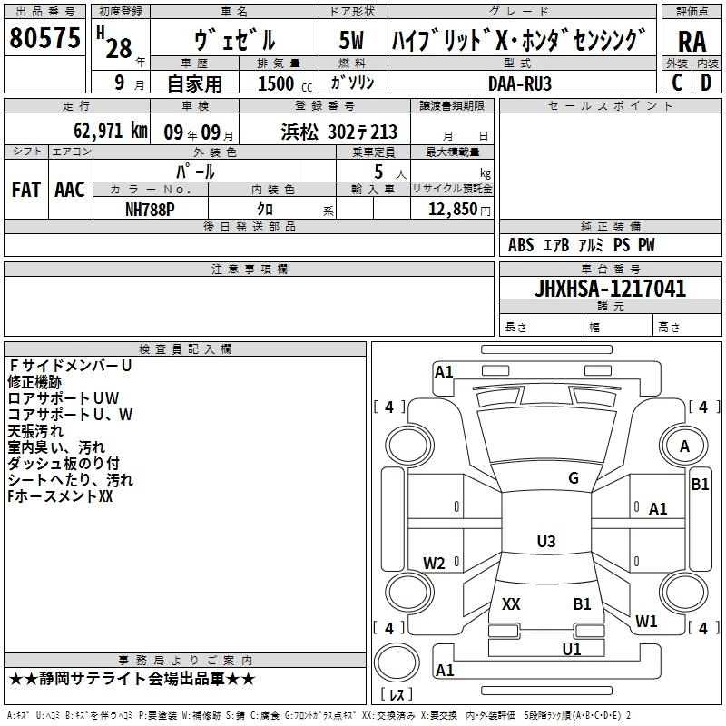 | X HONDA SENSING | DBA-RU1 | L15B | FF | CVT | 1496cc | 131ps(96kW)/6600rpm | AИ-92 | 2 120 000 | |