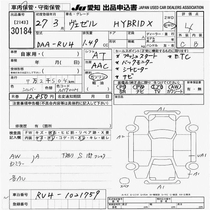 | HYBRID | DAA-RU3 | LEB | FF | 7AT | 1496cc | 132ps(97kW)/6600rpm | AИ-92 | 2 260 000 | |