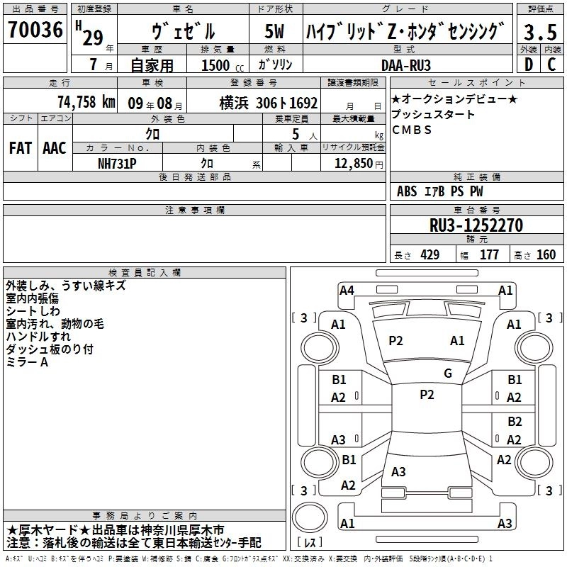 | SPECIAL EDITION HYBRID X HONDA SENSING BRILLIANT STYLE EDITION | DAA-RU3 | LEB | FF | 7AT | 1496cc | 132ps(97kW)/6600rpm | AИ-92 | 2 565 000 |