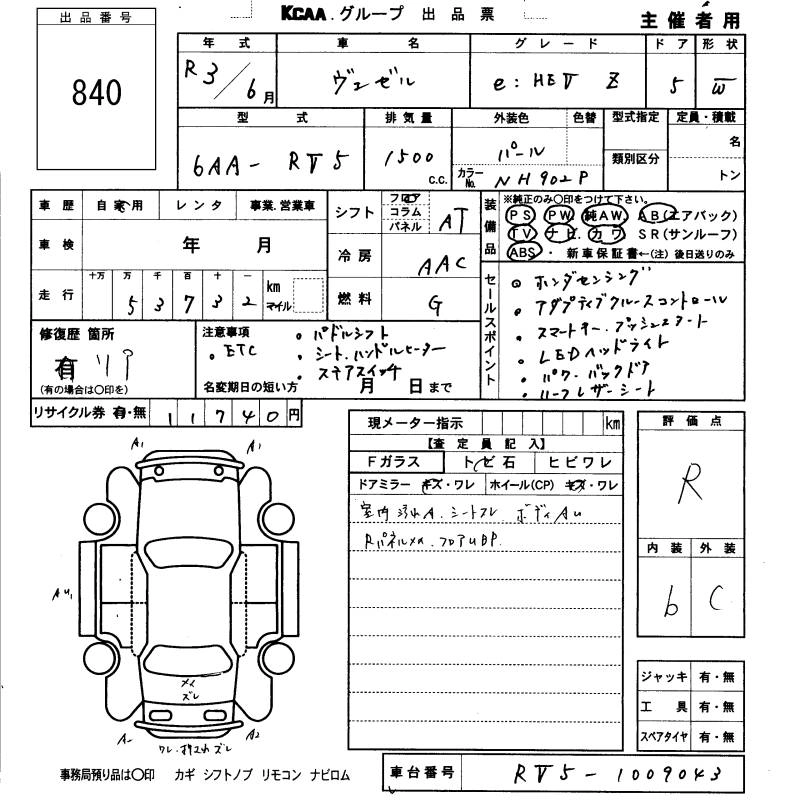 HONDA VEZEL 2021 г., лот № 840