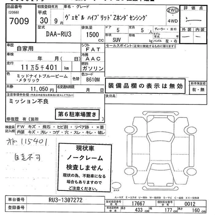 | G HONDA SENSING | DBA-RU1 | L15B | FF | CVT | 1496cc | 131ps(96kW)/6600rpm | AИ-92 | 2 075 000 | |