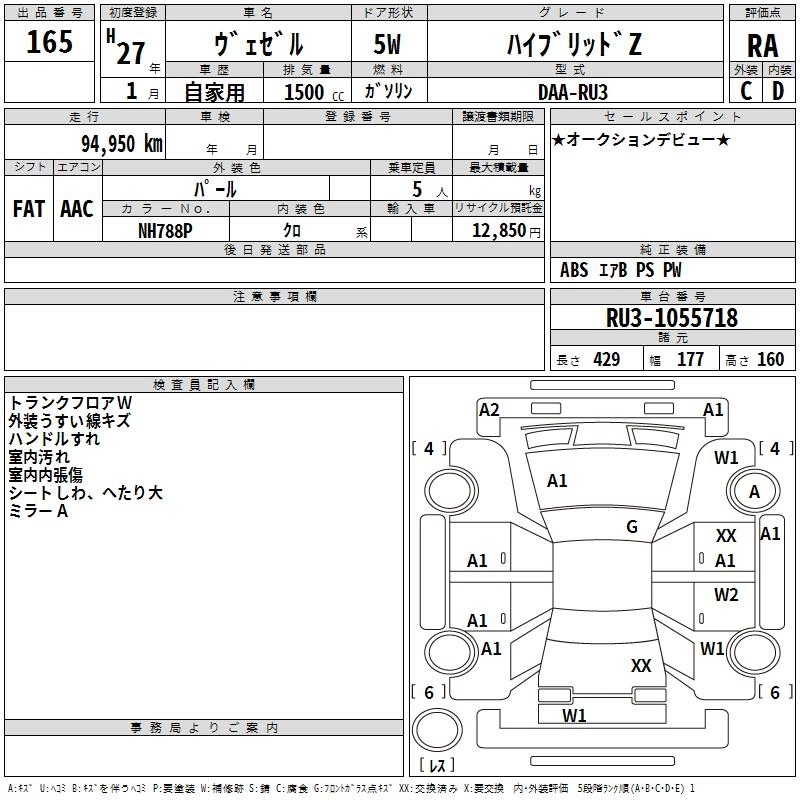 | HYBRID Z STYLE EDITION | DAA-RU3 | LEB | FF | 7AT | 1496cc | 132ps(97kW)/6600rpm | AИ-92 | 2 590 000 |