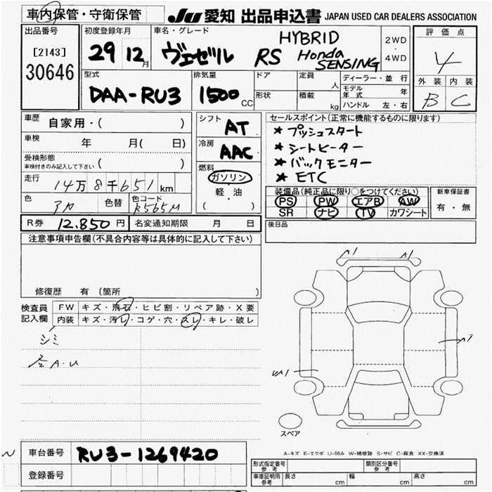 | SPECIAL EDITION HYBRID X HONDA SENSING BRILLIANT STYLE EDITION | DAA-RU3 | LEB | FF | 7AT | 1496cc | 132ps(97kW)/6600rpm | AИ-92 | 2 565 000 |
