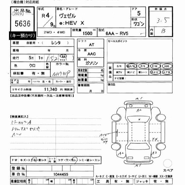 HONDA VEZEL 2022 г., лот № 5636