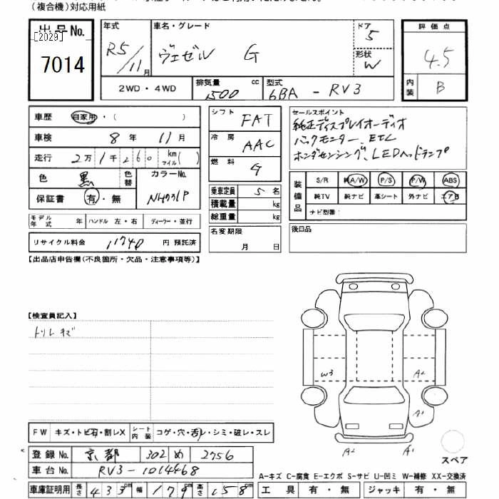 HONDA VEZEL 2023 г., лот № 7014