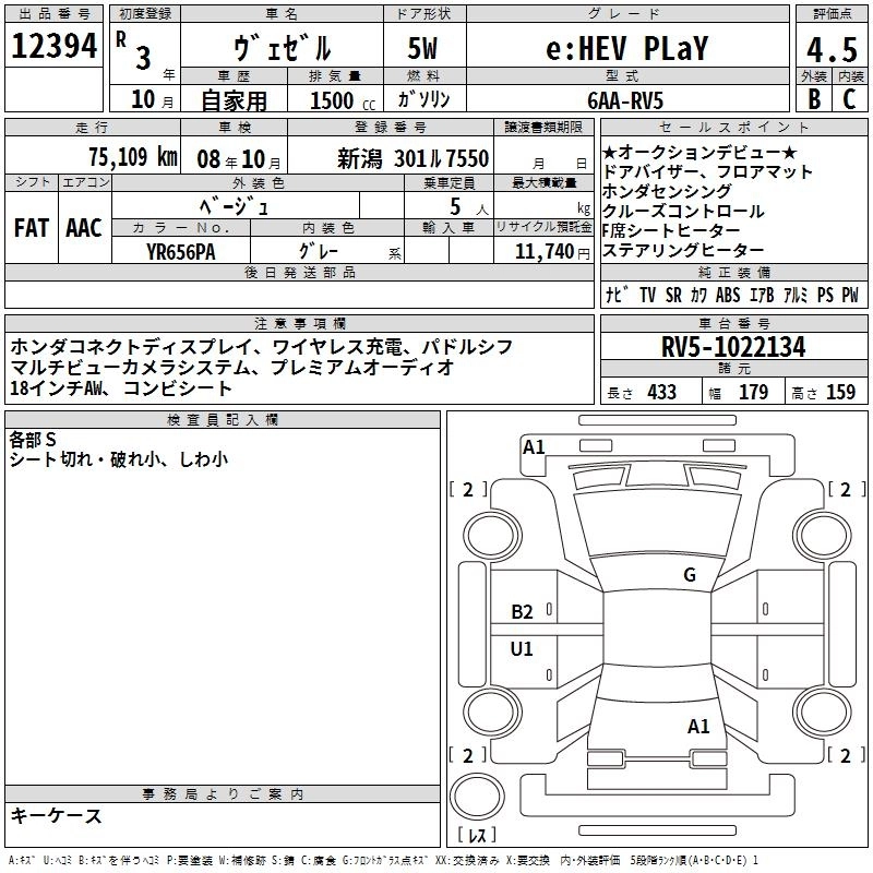 HONDA VEZEL 2021 г., лот № 12394