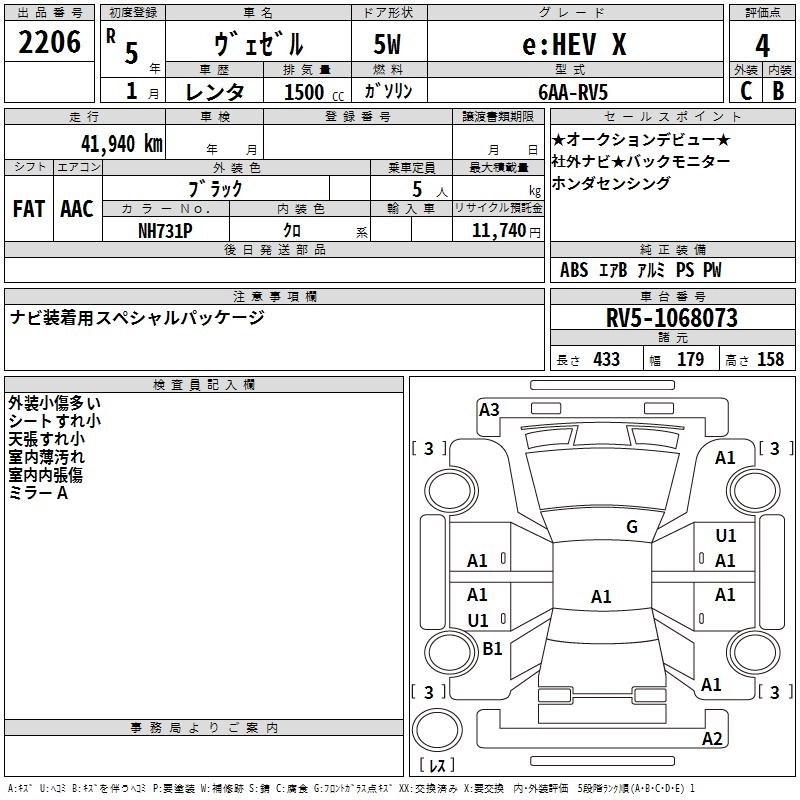 HONDA VEZEL 2023 г., лот № 2206