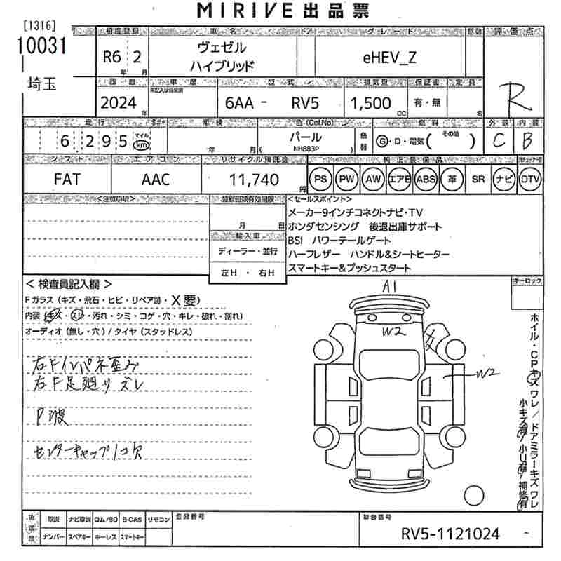 HONDA VEZEL 2024 г., лот № 10031