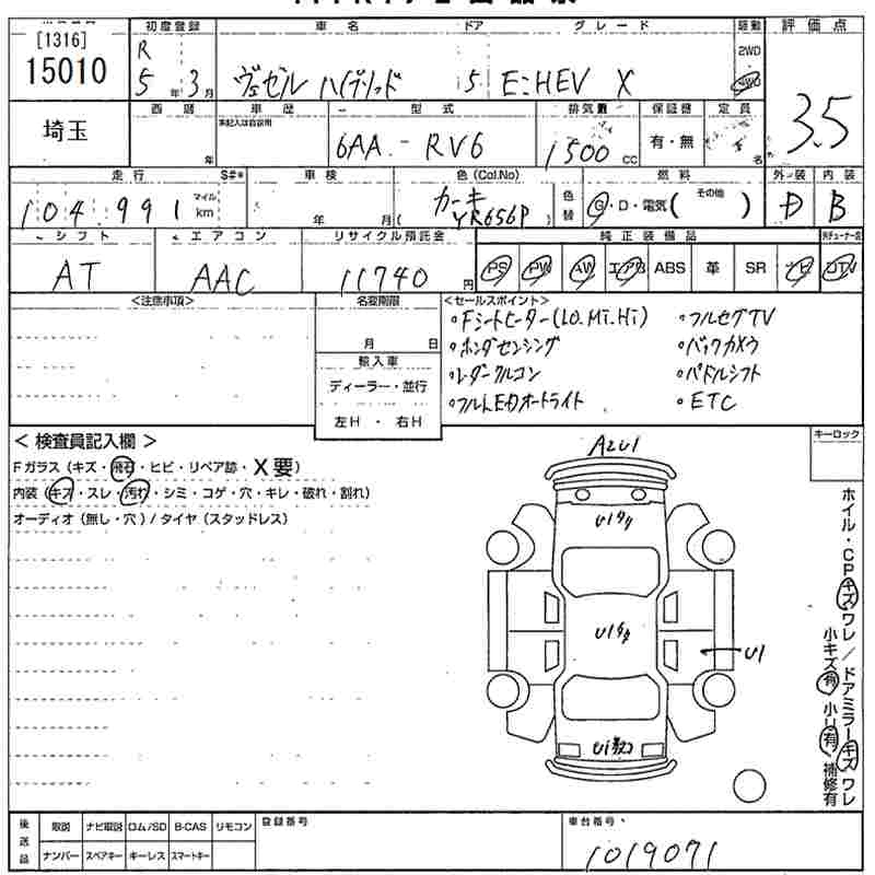 HONDA VEZEL 2023 г., лот № 15010