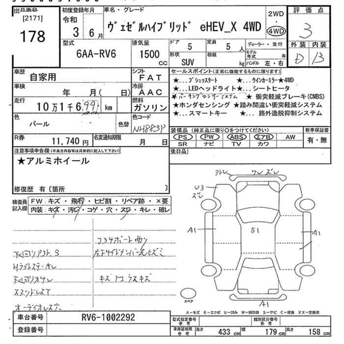 HONDA VEZEL 2021 г., лот № 178