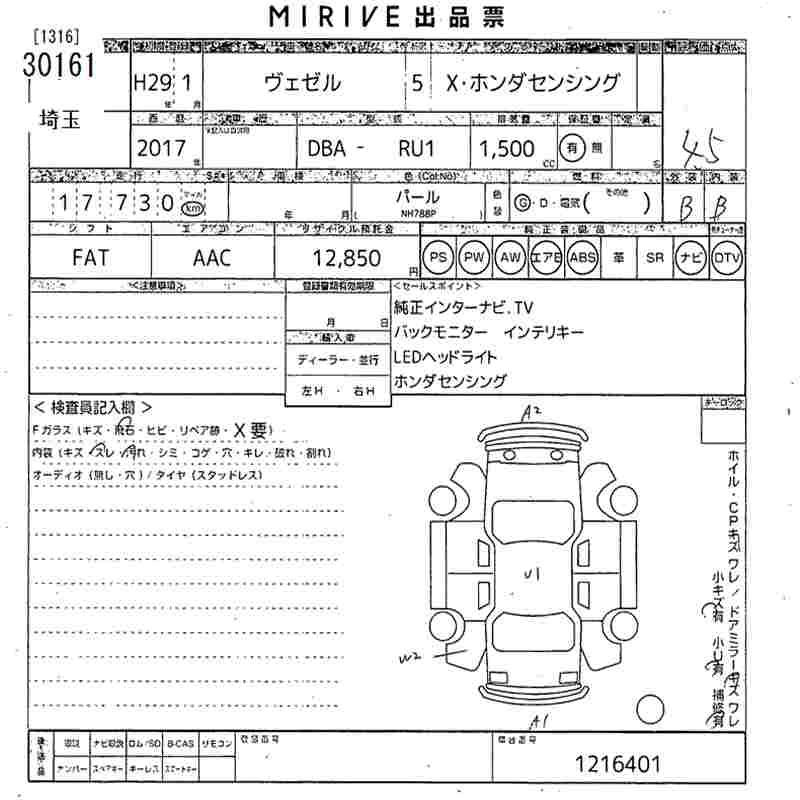 HONDA VEZEL 2017 г., лот № 30161