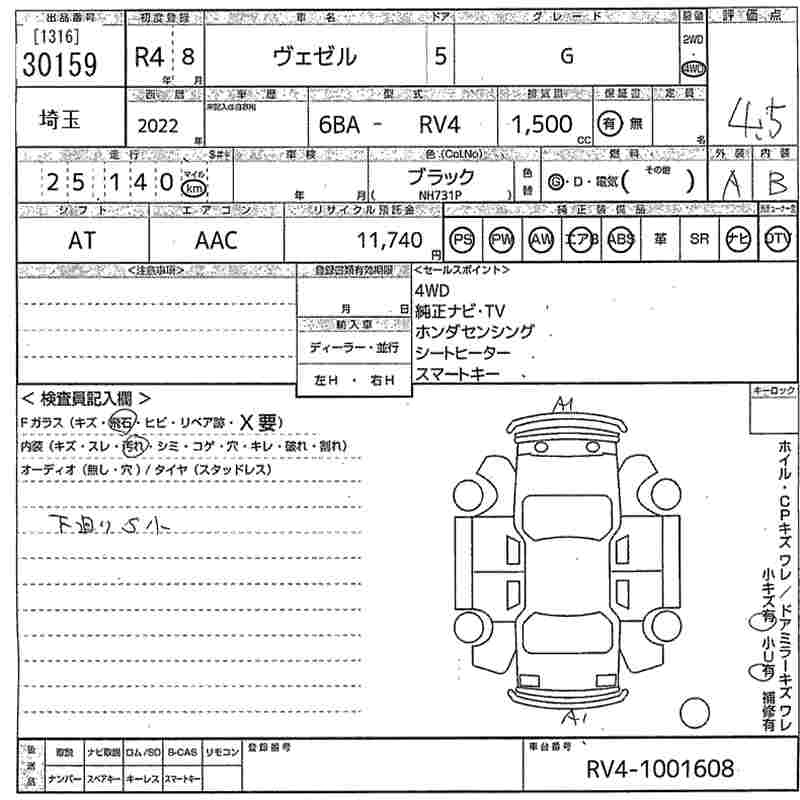 HONDA VEZEL 2022 г., лот № 30159