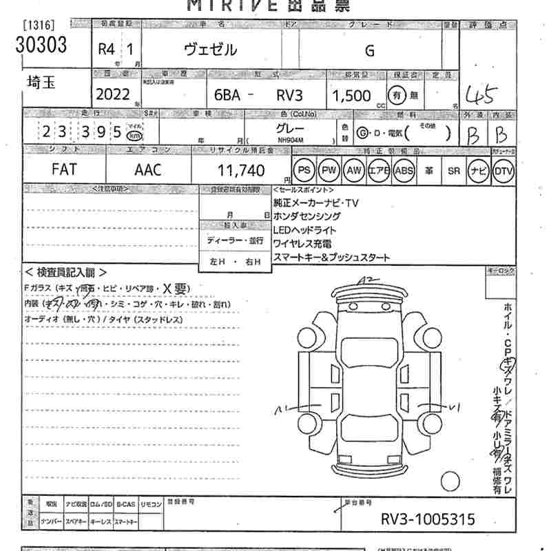 HONDA VEZEL 2022 г., лот № 30303