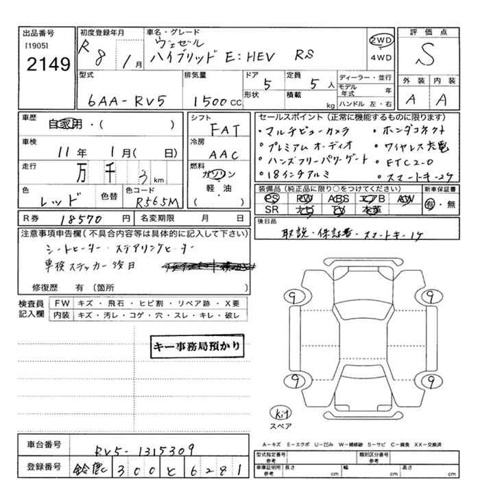 HONDA VEZEL 2026 г., лот № 2149