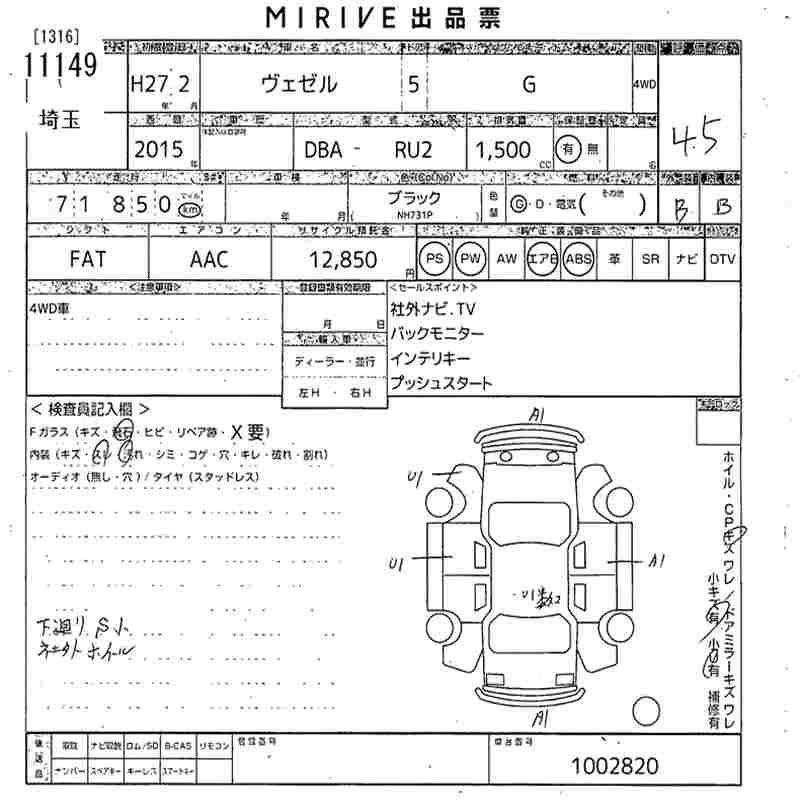 G DBA-RU2 L15B Full-time 4WD CVT 1496cc 131ps(96kW)/6600rpm AИ-92 2 147 000