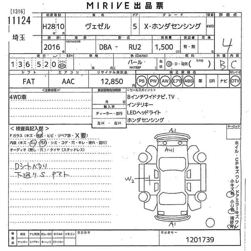 | X HONDA SENSING | DBA-RU1 | L15B | FF | CVT | 1496cc | 131ps(96kW)/6600rpm | AИ-92 | 2 120 000 | |