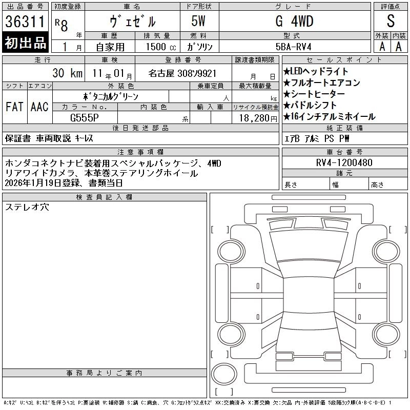 HONDA VEZEL 2026 г., лот № 36311