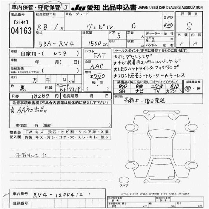 HONDA VEZEL 2026 г., лот № 4163