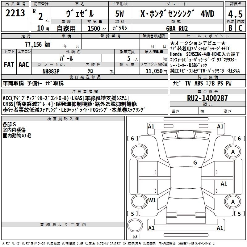 HONDA VEZEL 2020 г., лот № 2213