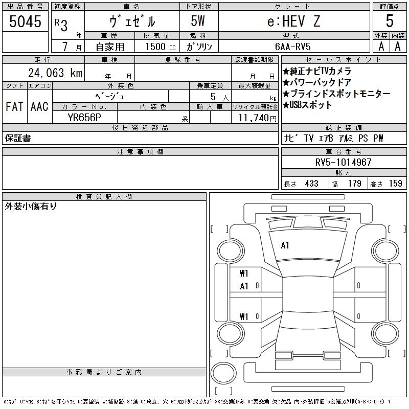 HONDA VEZEL 2021 г., лот № 5045