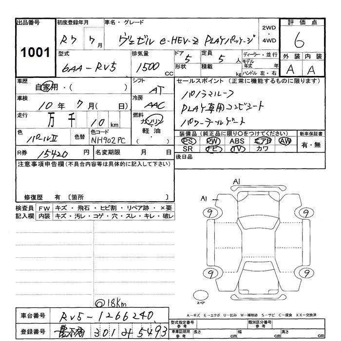 HONDA VEZEL 2025 г., лот № 1001