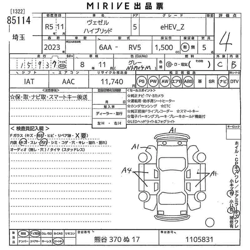 HONDA VEZEL 2023 г., лот № 85114