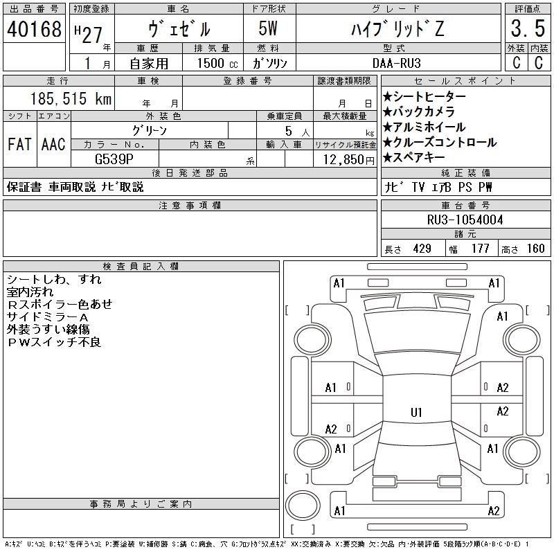 | HYBRID Z STYLE EDITION | DAA-RU3 | LEB | FF | 7AT | 1496cc | 132ps(97kW)/6600rpm | AИ-92 | 2 590 000 |