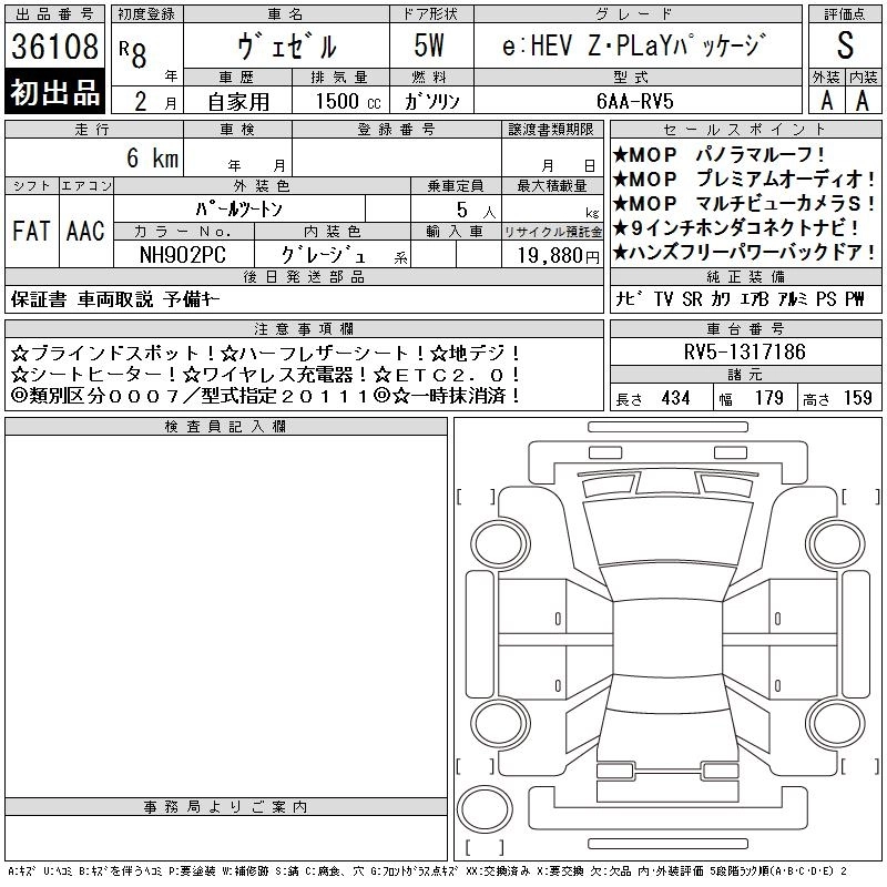 HONDA VEZEL 2026 г., лот № 36108